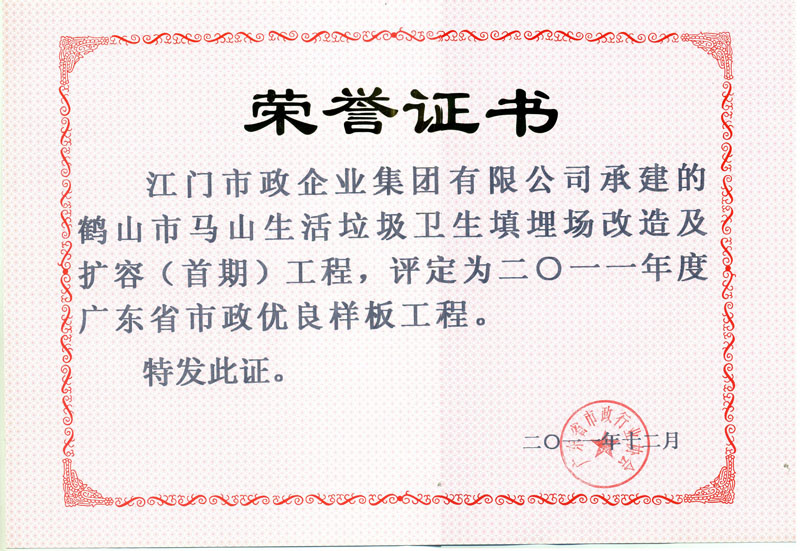 江門(mén)市旗桿石生活垃圾填埋場(chǎng)一期工程(2013年省優(yōu))